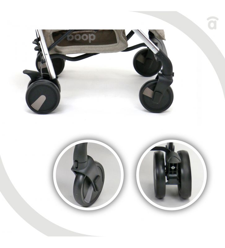 - Chasis de aluminio · Respaldo totalmente reclinable en 3 posiciones (con una mano) Ruedas EVA