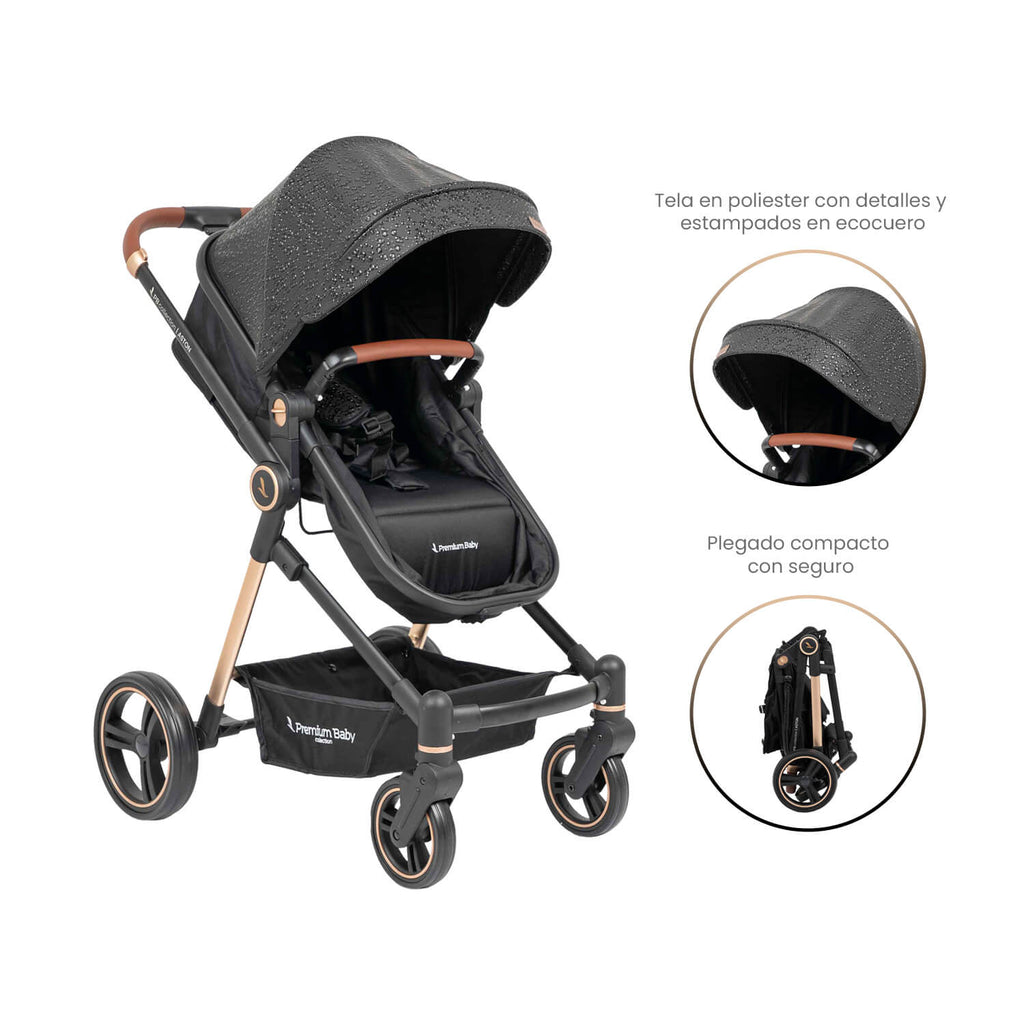 - Cuenta con detalles de lujo, eco-cuero en capota XL y manija reversible