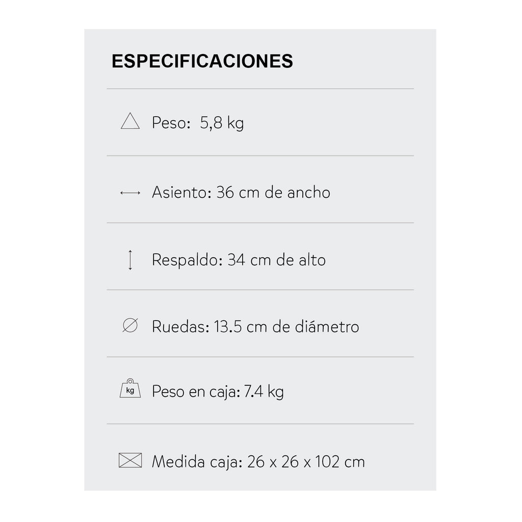 - Peso máximo soportado: 15 Kg