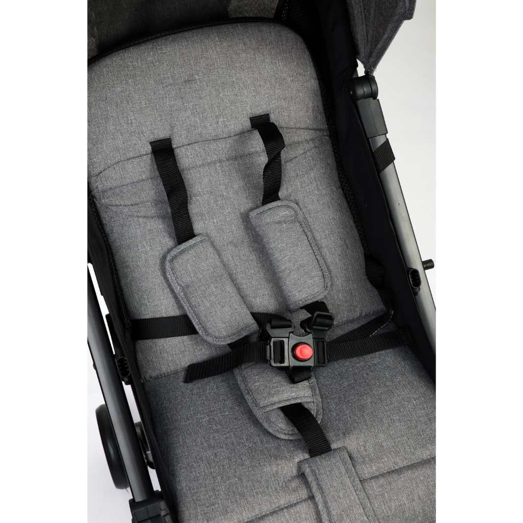 - La seguridad es nuestra máxima prioridad, por eso nuestro cochecito está equipado con cinturones de seguridad rígidos que brindan una protección óptima a su hijo mientras se mueve.