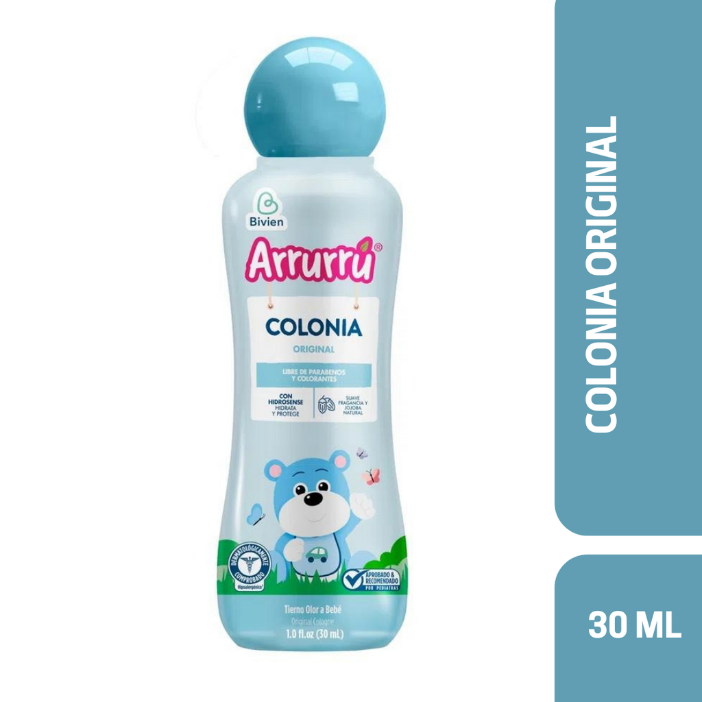 La deliciosa Colonia Arrurrú Azul tiene una fórmula enriquecida con glicerina para mantener la humectación natural de la piel de tu bebé.