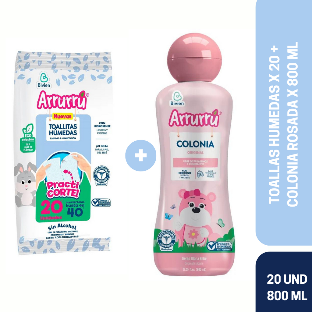 COLONIA ROSADA X 800 ML + TOALLAS SUAVIDAD Y HUMECTACIÓN AAB306 ARRURRÚ