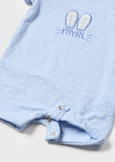 Original set de dos piezas para recién nacido. Cuello redondo. Cierre lateral con botones a presión.
