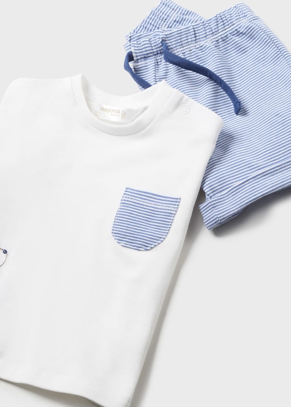 Set de cuatro piezas para recién nacido formado por dos conjuntos de camiseta de manga corta y short combinables.
