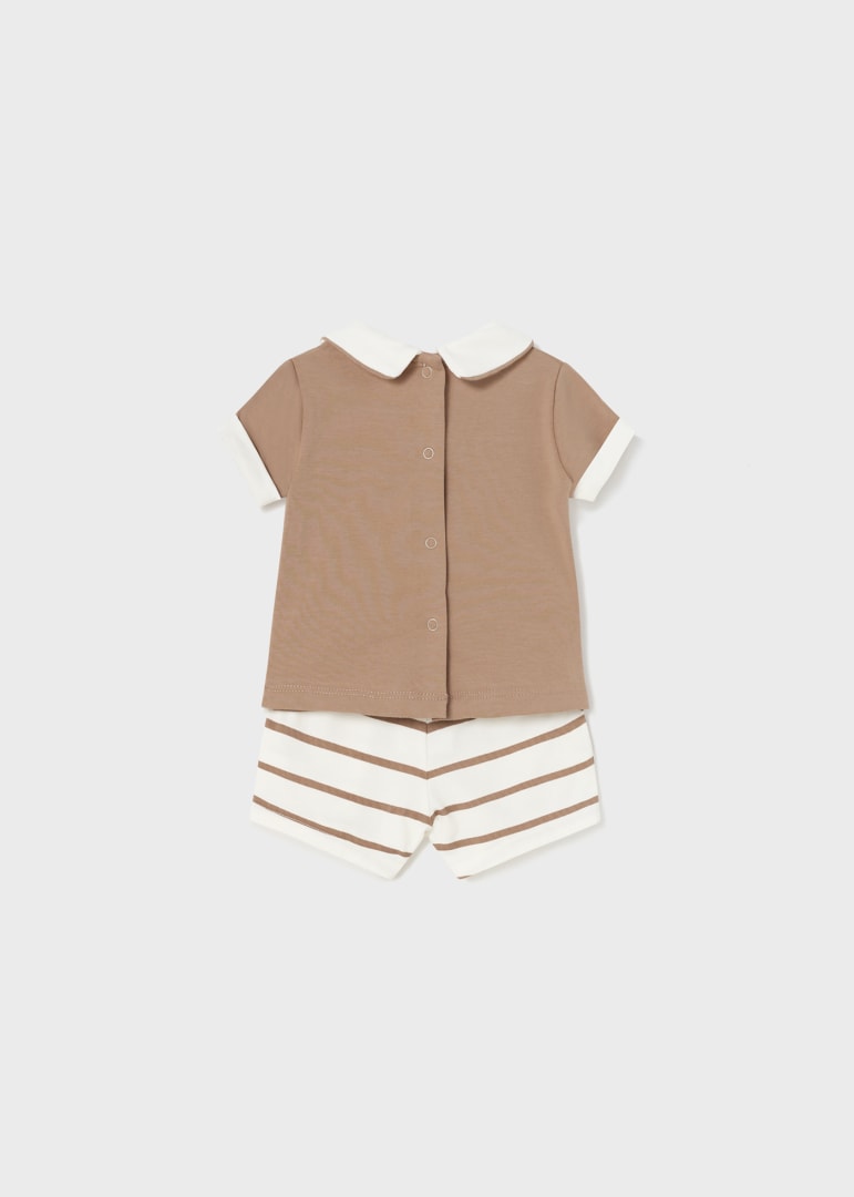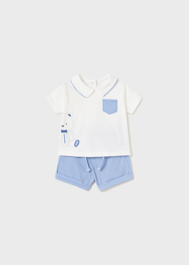 Set de cuatro piezas para recién nacida niña y niño de 0 a 18 mese formado por dos conjuntos de camiseta corta y short combinables. Camiseta de manga corta Suave tejido de algodón elástico. Pantalón para recién nacido. Goma elástica en la cintura para un mejor ajuste. Suave tejido de algodón elástico.