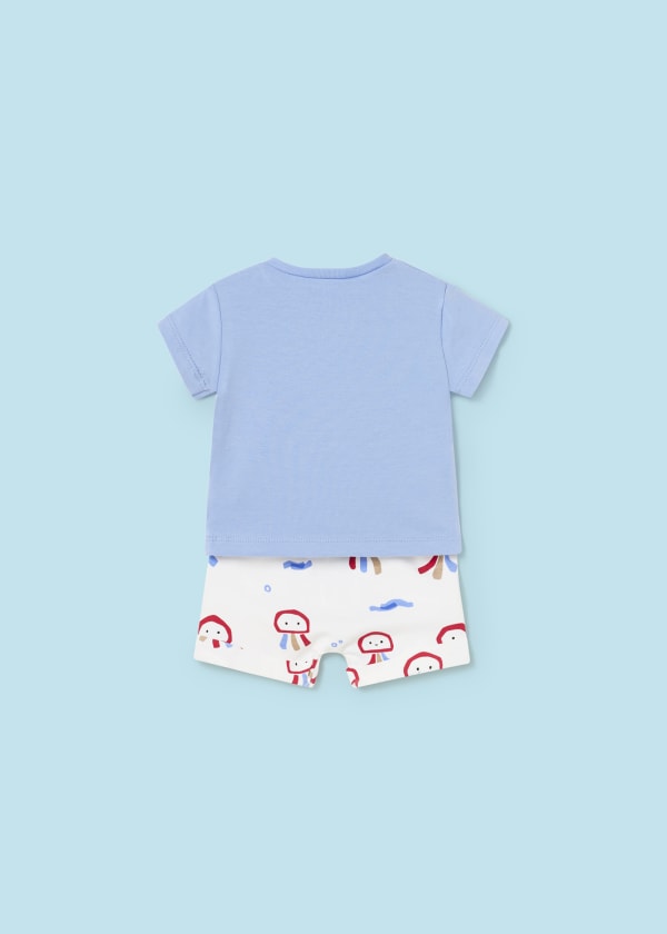 Set de cuatro piezas para recién nacido formado por dos conjuntos de camiseta de manga corta y short combinables.
