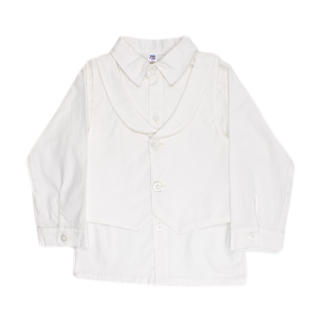 Conjunto para bautismo, camisa manga larga y pantalón clásico con bolsillos en la parte de adelante y atrás.