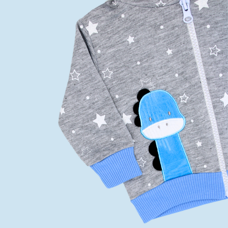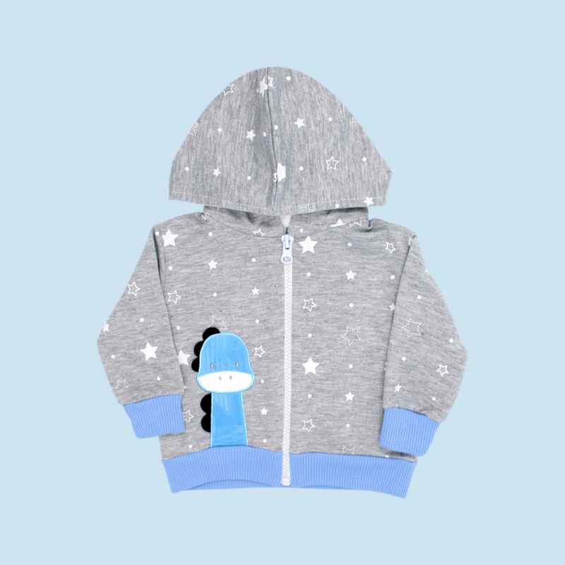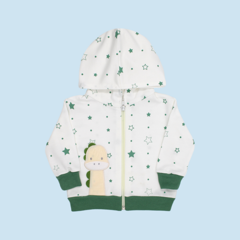 Conjunto 3 piezas, camiseta, chaqueta con capota y bermuda con motivo de Jirafa. Elaborado con tela en algodón que le brindará frescura y suavidad a tu pequeño a la hora de moverse y disfrutar de los juegos y actividades del día a día.