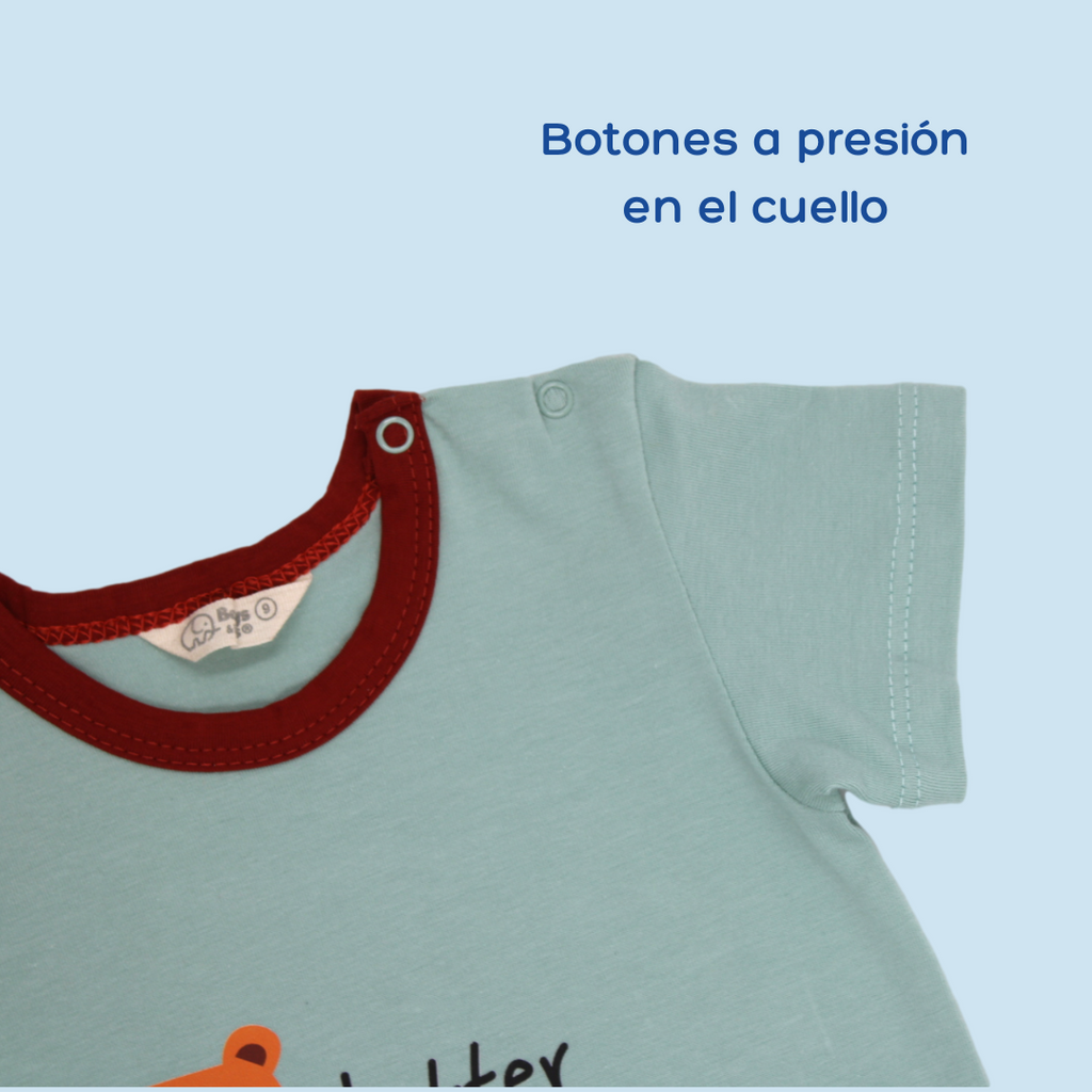 Set 2 piezas, contiene camiseta con estampado, cuello redondo y Bermuda.