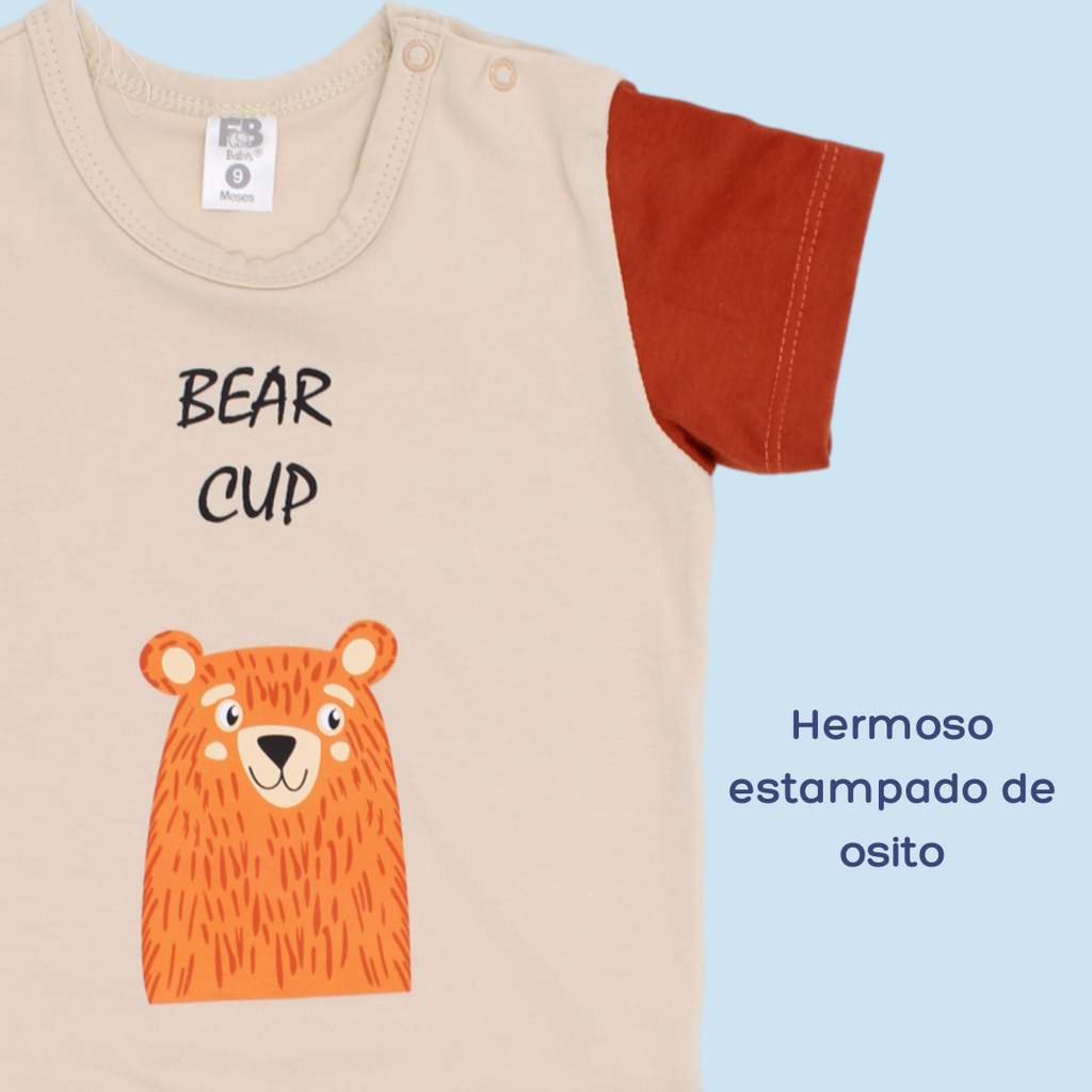 ¡Tu bebé estará siempre a la moda con el CONJUNTO BERMUNA NIÑO 50185 FOR BABY! Incluye una divertida camiseta de cuello redondo con estampado en la parte frontal y una cómoda bermuda con ajuste en la cintura. Disponible en tallas de 9M a 24M y elaborado con 97% algodón y 3% lycra. ¡Ideal para los días de verano!