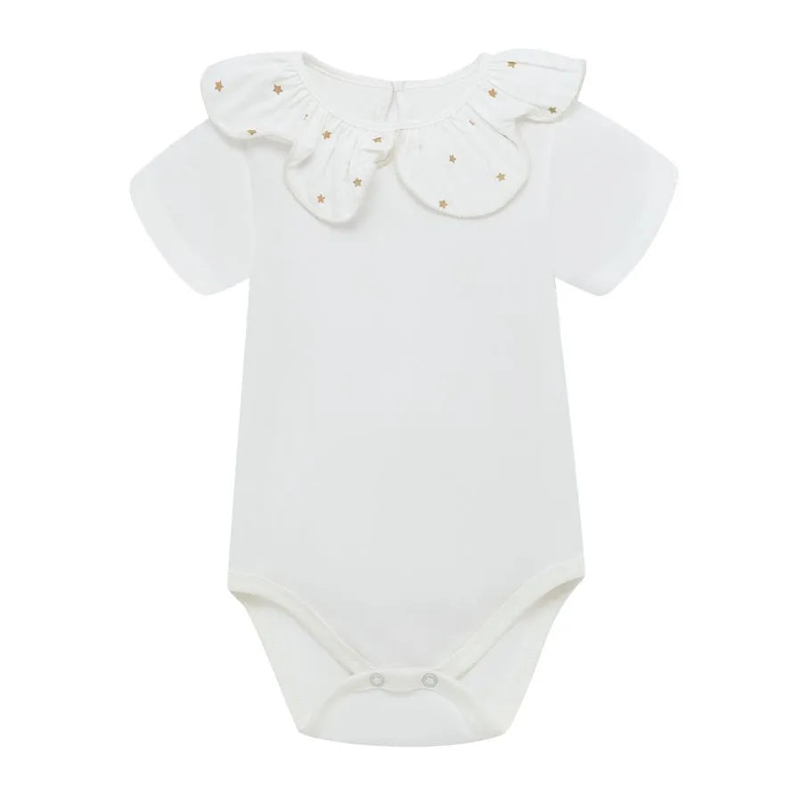 - Body manga corta con detalle de boleros en cuello, dándole un toque delicado y tierno.