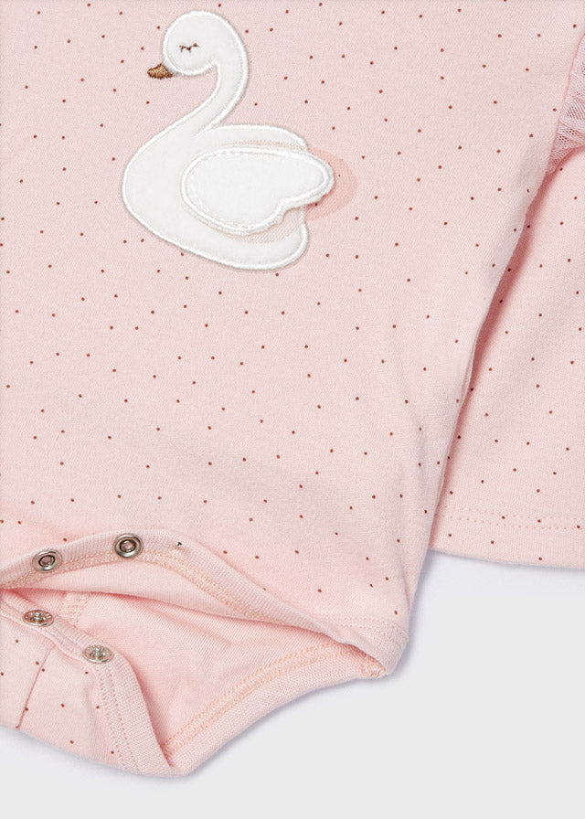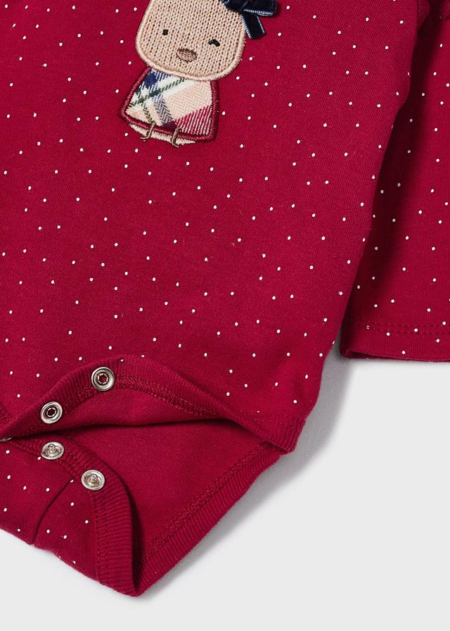 - Body de manga larga para recién nacido con volantes en los hombros. Cierre con botones a presión en la parte posterior para facilitar la puesta de la prenda. Cierre con botones a presión en la entrepierna para facilitar la puesta de la prenda.