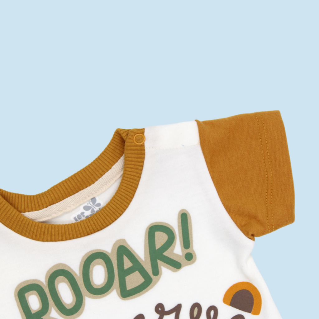 Conjunto 2 piezas, camiseta y pantalón largo con motivo de rinoceronte. Elaborado con tela en algodón que le brindará frescura y suavidad a tu pequeño a la hora de moverse y disfrutar de los juegos y actividades del día a día.