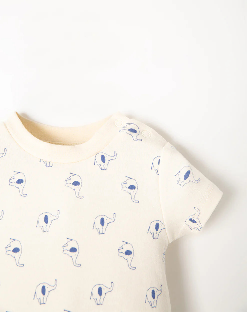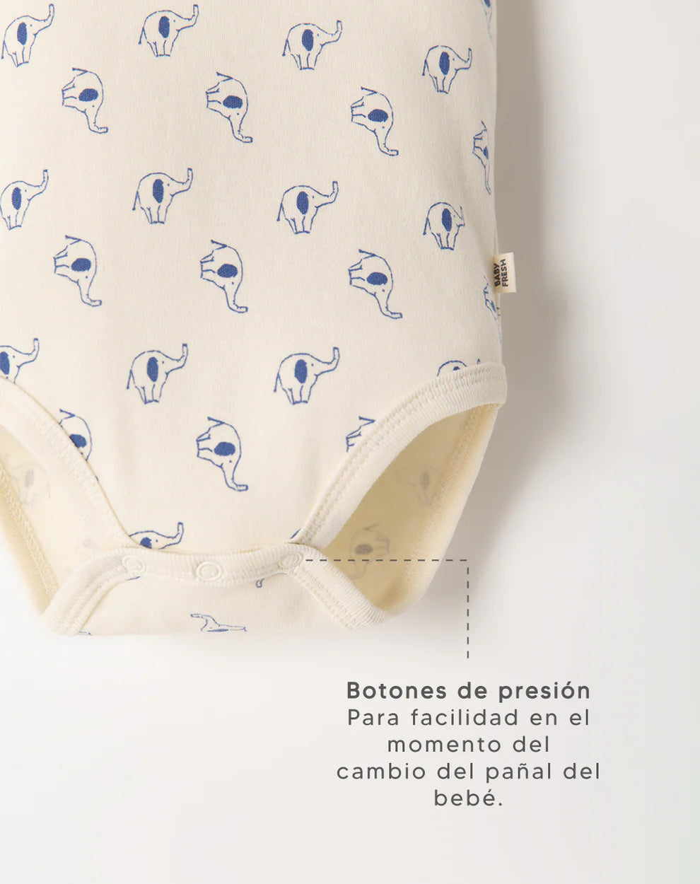 Conjunto de camiseta cuello redondo, manga corta y braga. Elaborado en algodón, el cual proporciona suavidad y frescura ideal para la piel del bebé.