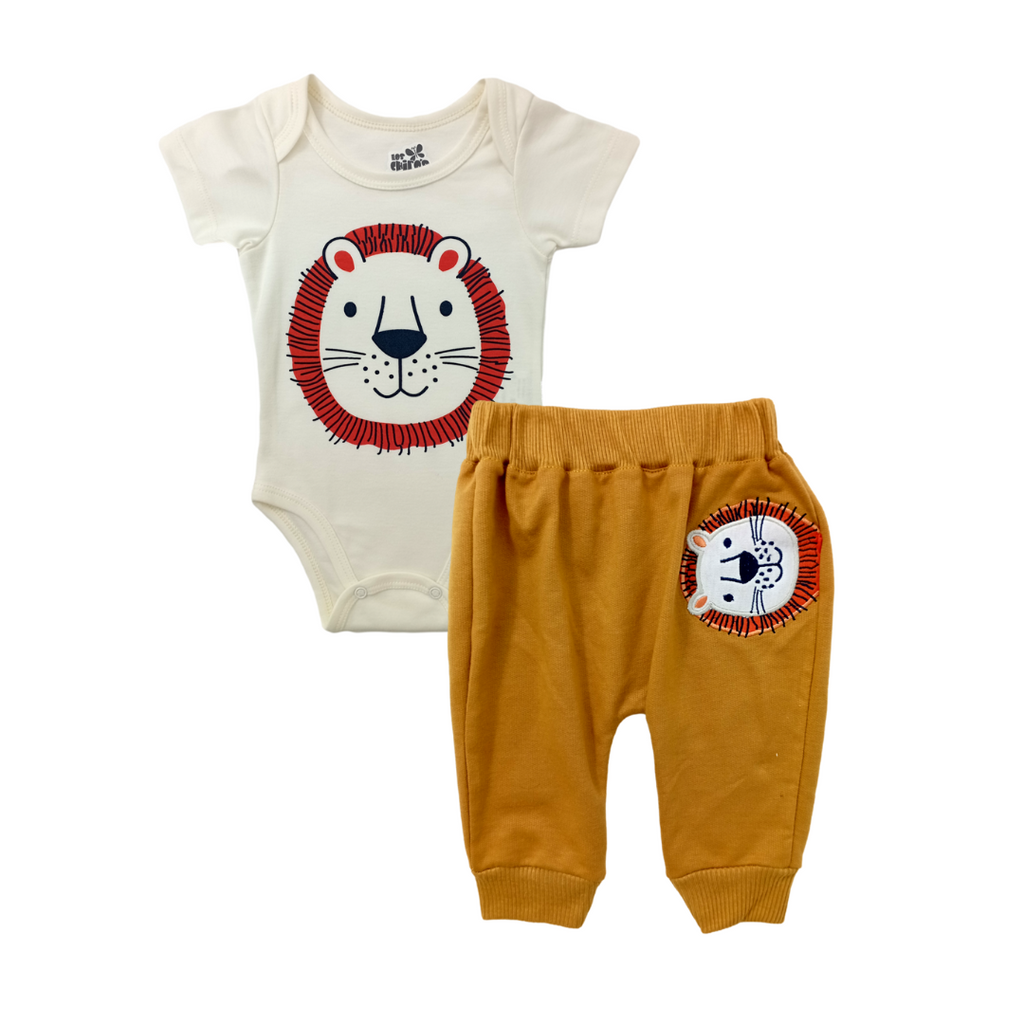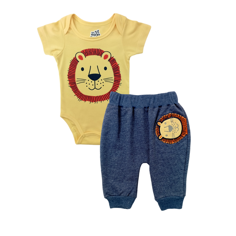 Conjunto 2 piezas con bordados, body con estampados, sudadera unicolor, ideal para mantenerlo abrigado en todo momento.