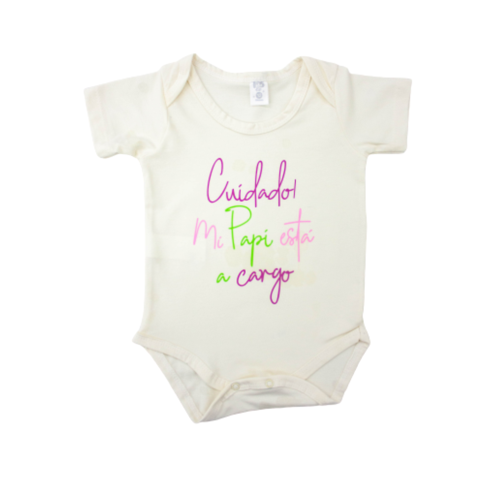 Set 3 piezas con estampados, pantalón y gorro a rayas, body con frase en la parte posterior. Elaborado en algodón.