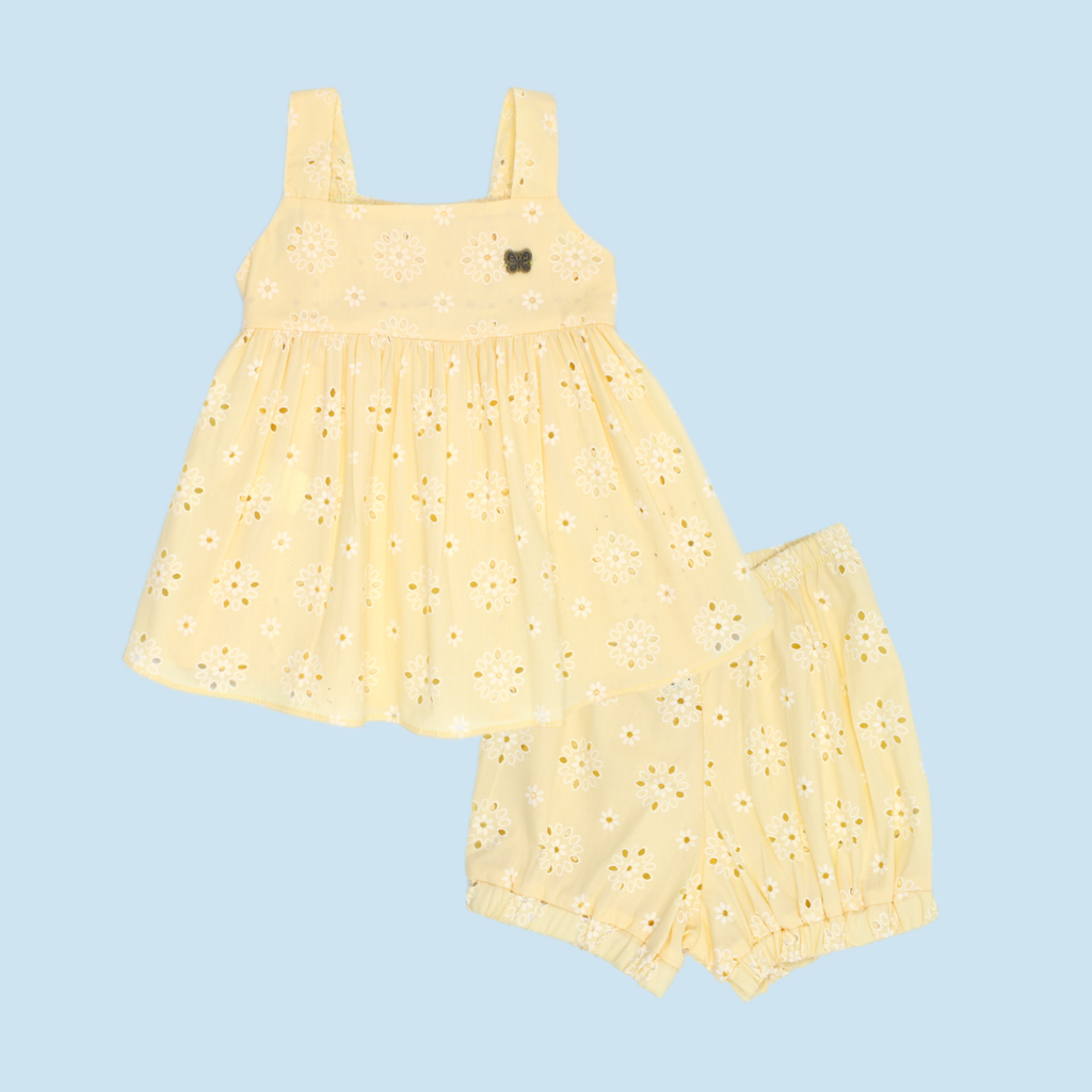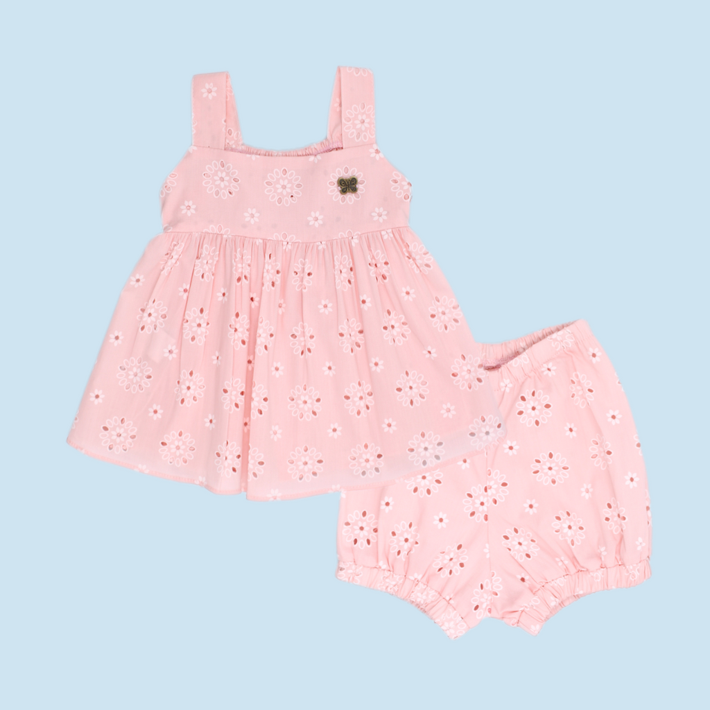 ¡El CONJUNTO NIÑA 1915 LOS CHIROS DE MARIA JOSÉ es la mejor opción para tu bebé! Compuesto por una camiseta y una braga, presenta un estampado suave y delicado para cuidar la piel de tu pequeño. Es cómodo y perfecto para cualquier ocasión. ¡Viste a tu bebé con los mejores estilos!