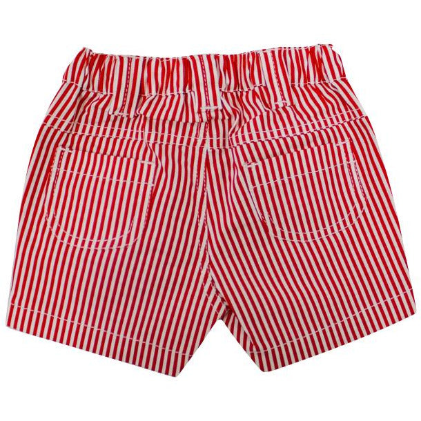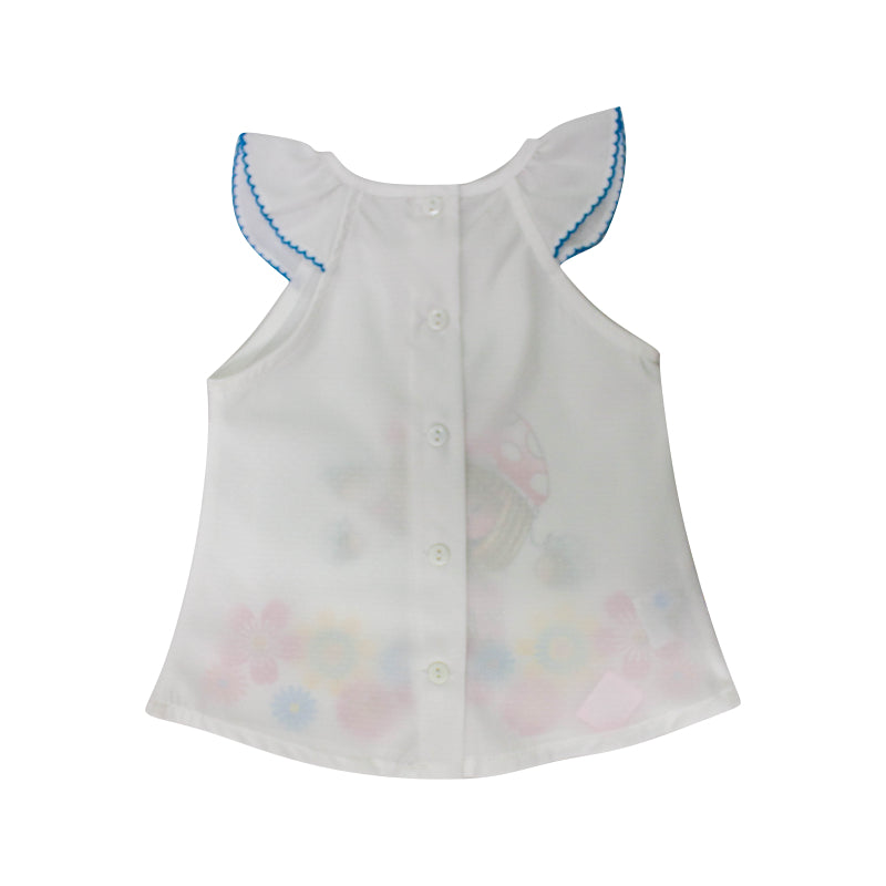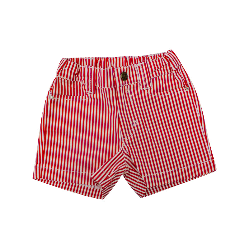 Conjunto niña, blusa unicolor con estampados, short con bolsillos en el frente y la parte de atrás, estampados de rayas.