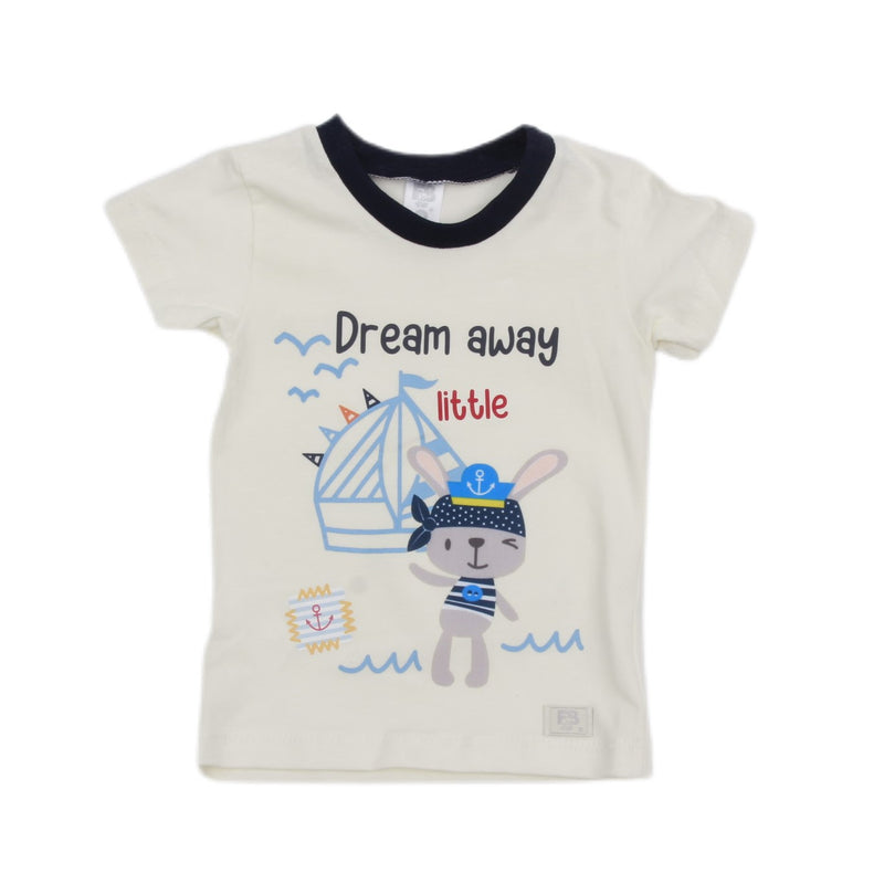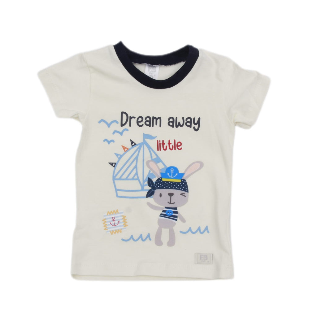 Set 2 piezas, contiene camiseta con estampado, cuello redondo, y bermuda jean con falsos bolsillos en el frente y ajuste en la cintura.