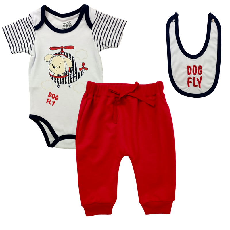 Conjunto 2 piezas, camiseta , Sudadera y babero Elaborado con tela en algodón que le brindará frescura y suavidad a tu pequeño a la hora de moverse y disfrutar de los juegos día a día