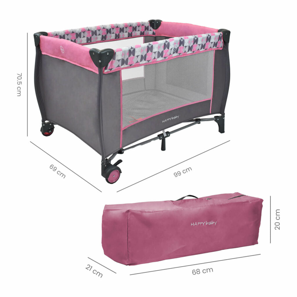La cuna corral Niza de Happy Baby brinda comodidad con su mosquito, cambiador y cinturón de dos puntos. Cuenta con dos niveles de altura y bolsillo lateral. ¡Perfecta para viajar con su maletín de transporte!