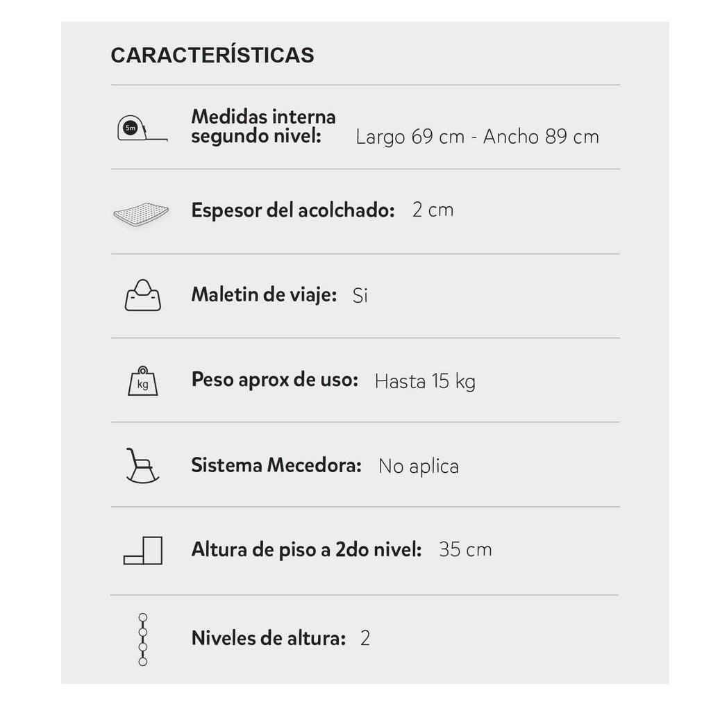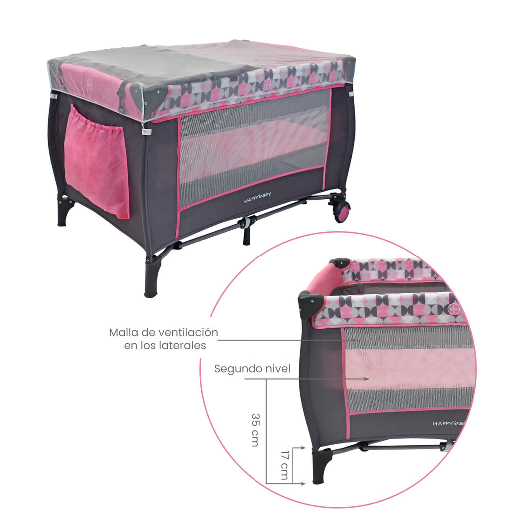 - La cuna corral Niza de Happy Baby es ideal para acompañar a tu bebé, haciendo que las siestas de sueño sean cómodas y seguras. La puedes usar como cuna y como corral, creando un espacio de juego seguro ya que cuenta con dos niveles de altura.