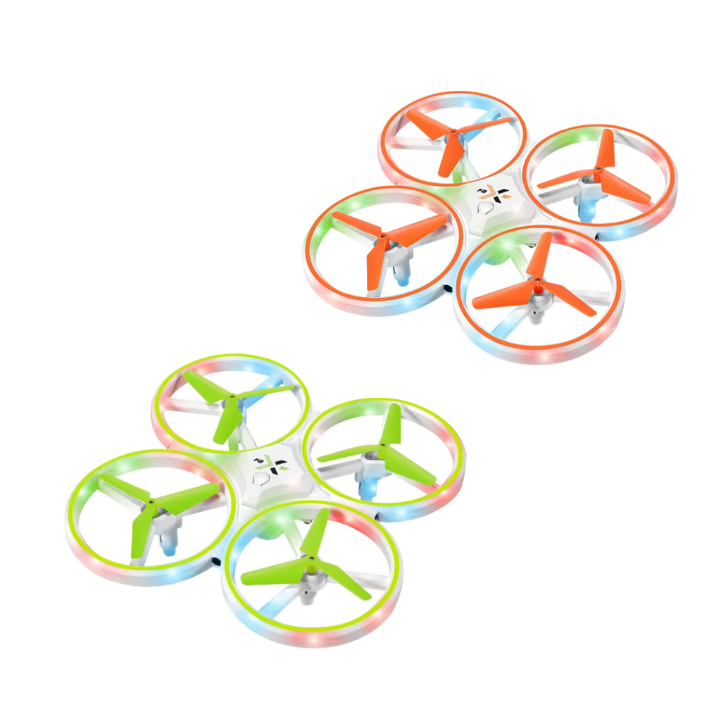 - Efectos de Iluminación: Posee LED LIGHTING (luces LED) visibles y coloridas en los protectores de las hélices, ideal para vuelos nocturnos o para identificar la orientación.