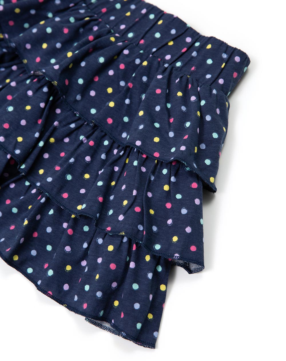 Falda con capas y short interno, elaborado en algodón, el cual proporciona suavidad y frescura, ideal para la piel del bebé.