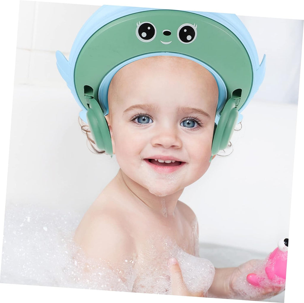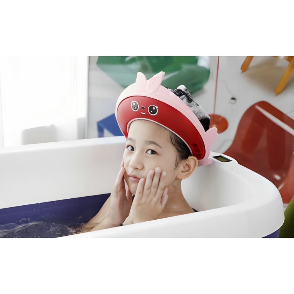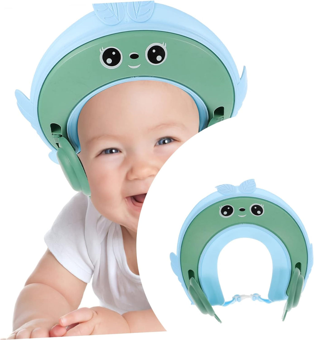 - Gorro para bebé con dos almohadillas de protección para los oídos, que es ajustable para adaptarse bien al bebé. Puede proteger los ojos y orejas de los niños del agua durante el baño.