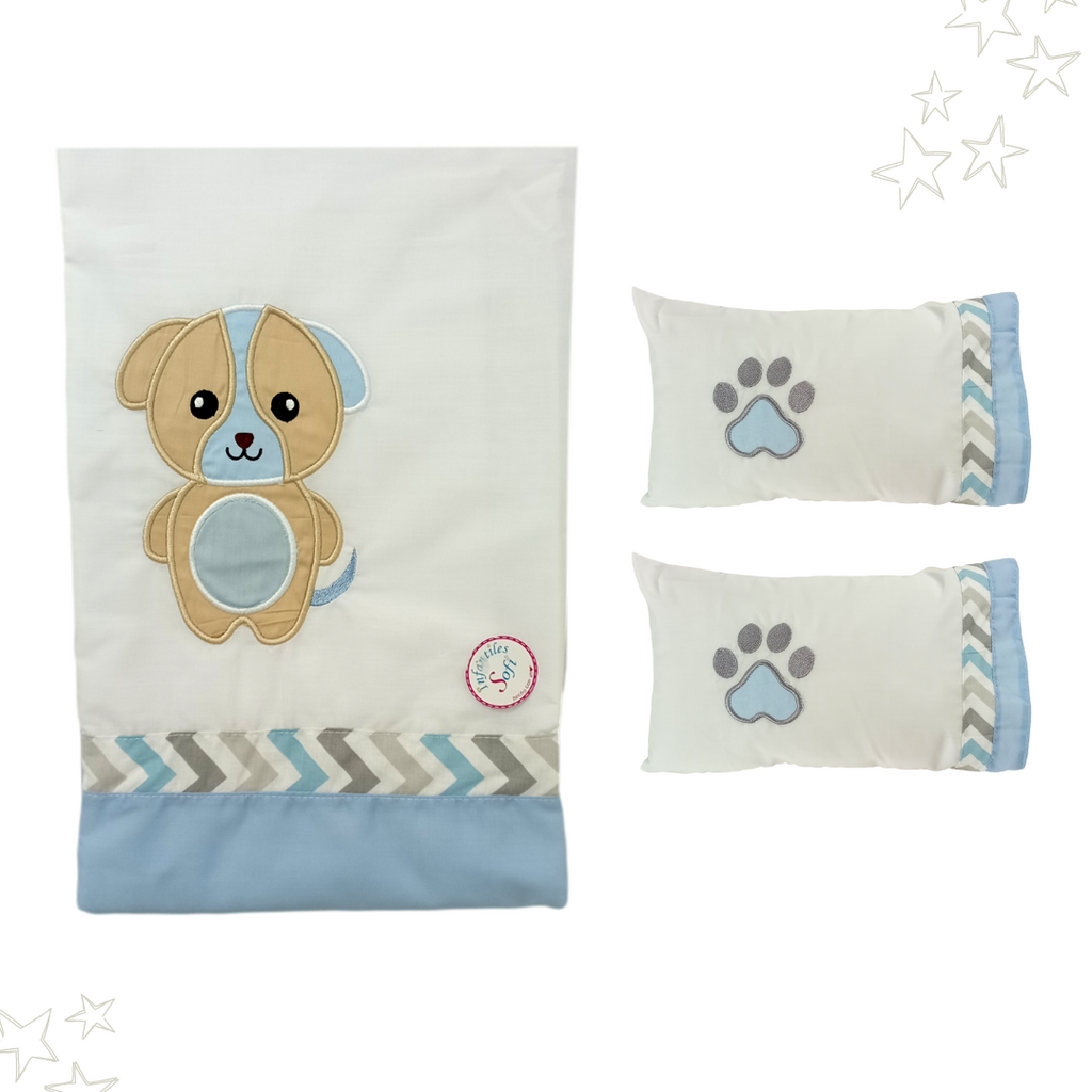 Juego de sábana para cuna con hermosos estampados. Variedad de motivos y colores. Contiene fundas estampadas y con bordados.