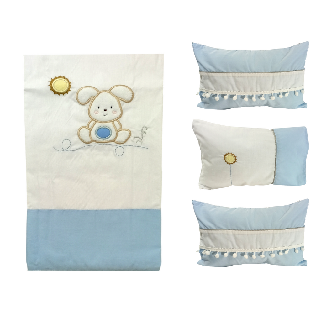 Juego de sábana para cuna con hermosos estampados. Variedad de motivos y colores. Contiene fundas estampadas y con bordados.