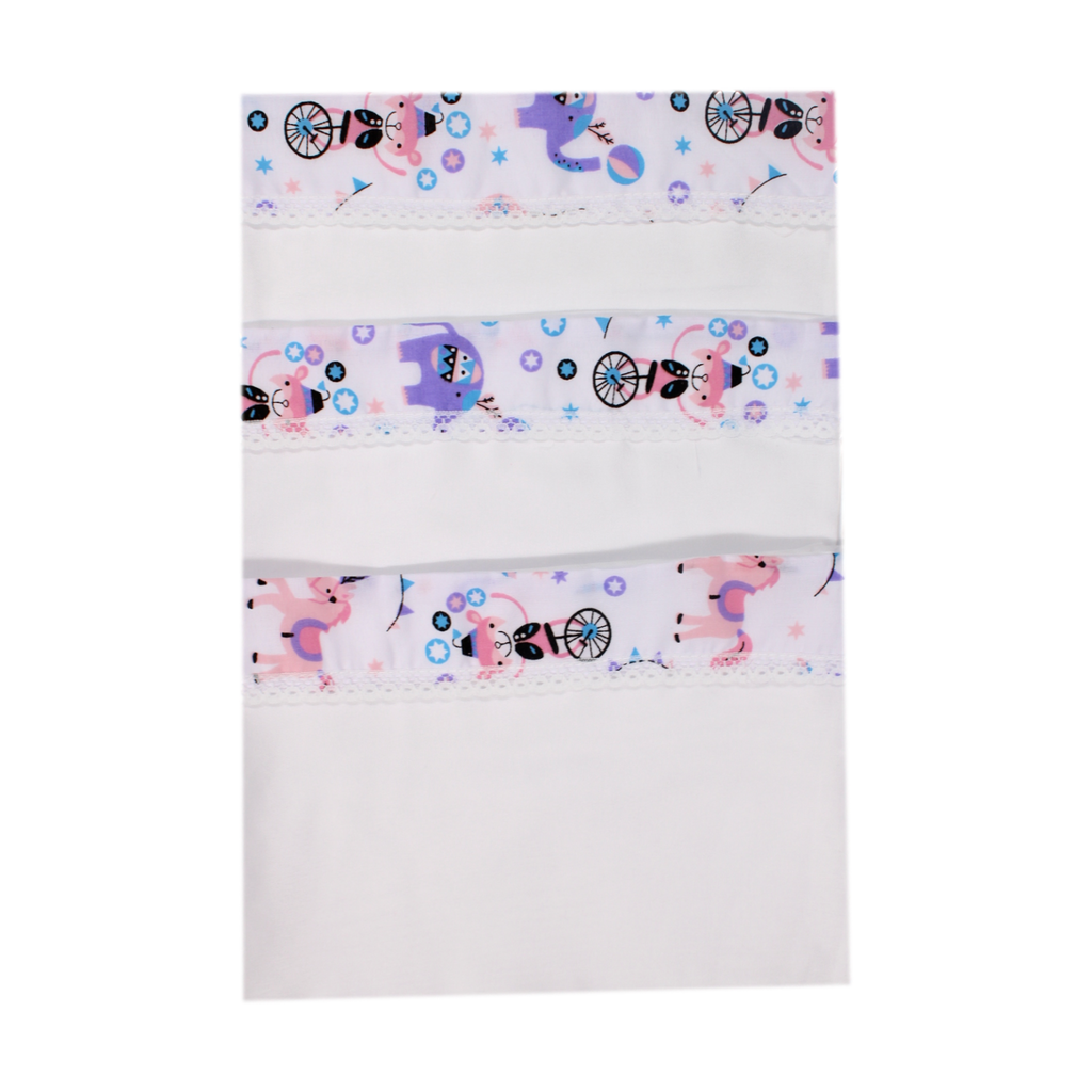 Hermoso trio de fundas para la cama de tu bebé, estampado suave y delicado.