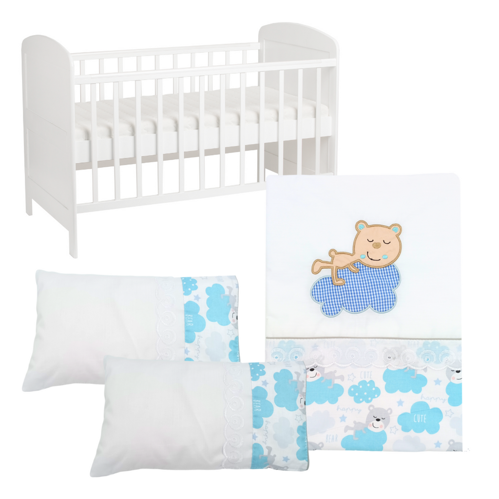 Juego de sábana para cuna con hermosos estampados. Variedad de motivos y colores. Contiene fundas estampadas y con bordados.