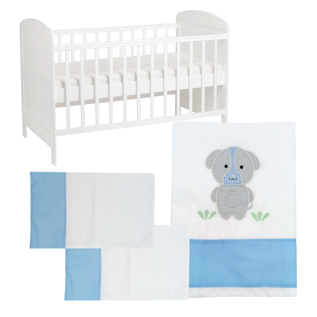 Juego de sábana para cuna con hermosos estampados. Variedad de motivos y colores. Contiene fundas estampadas y con bordados.