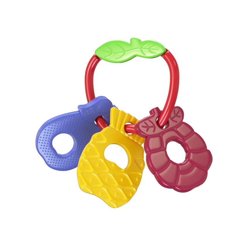 Llamadientes con elaborado en superficie suave y texturizada diseñada para masajear las encías, calmando las molestias que causan los dientes al salir.