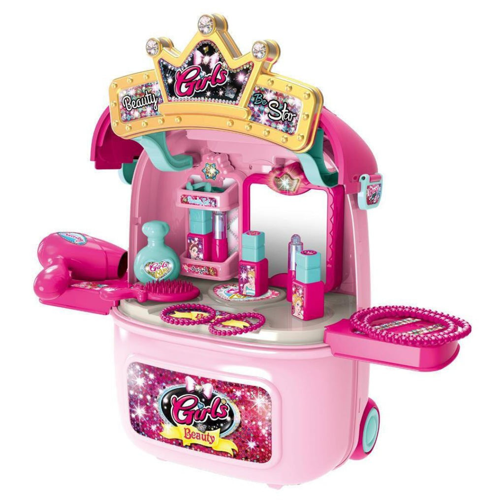 Descubre la Maleta Tocador Maquillaje 008-983A, el juguete perfecto para niñas creativas. Este set incluye un tocador portátil con accesorios de maquillaje diseñados para el juego seguro y divertido. Con su diseño compacto, las niñas pueden llevar su propio tocador infantil portátil a cualquier lugar. Encuentra este y más juguetes interactivos en Surtibaby, tu tienda de confianza en productos para bebés y niños. ¡Compra ahora y fomenta la imaginación de tu pequeña con los mejores precios!