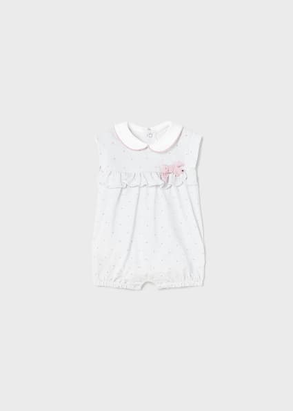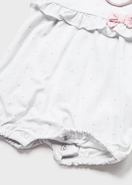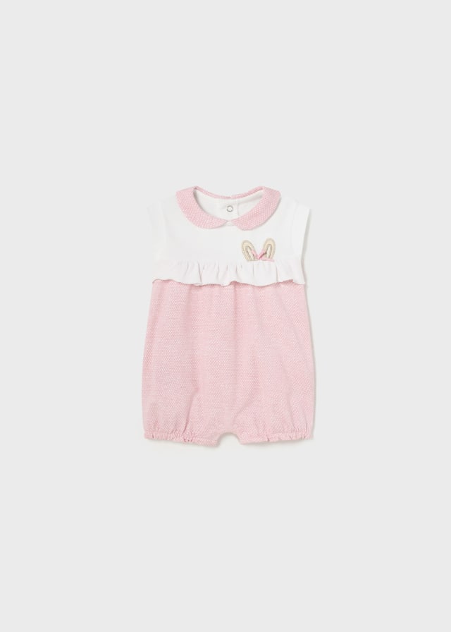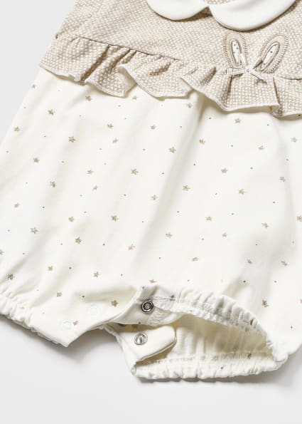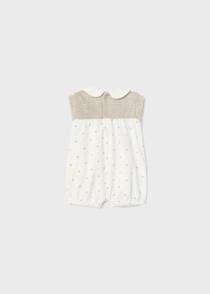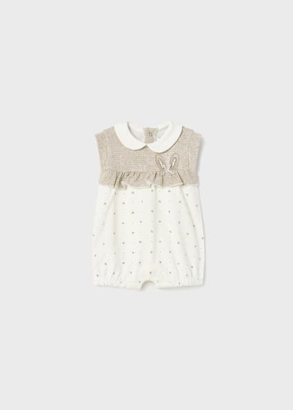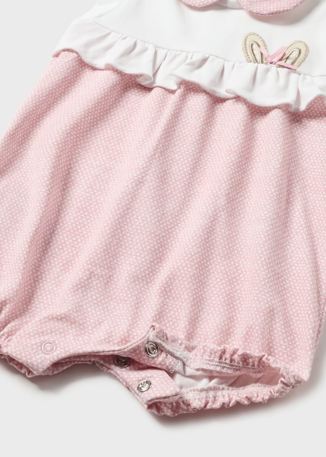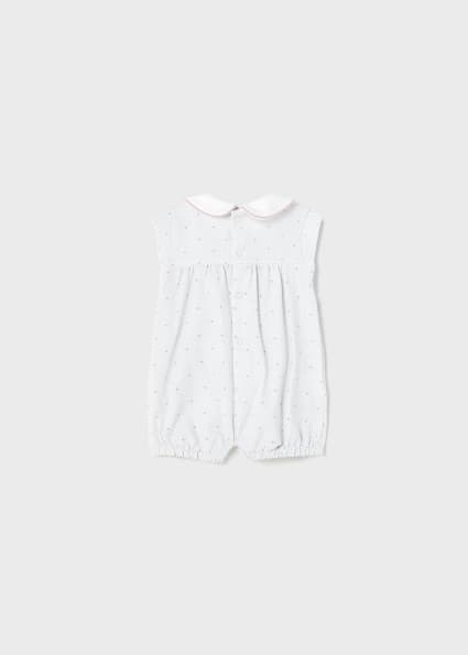 Prenda ECOFRIENDS, contiene algodón sostenible. Pijama sin mangas para recién nacido. Cierre con botones a presión en la parte posterior para facilitar la puesta de la prenda. Cierre con botones a presión en la entrepierna para facilitar la puesta de la prenda.