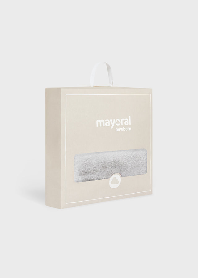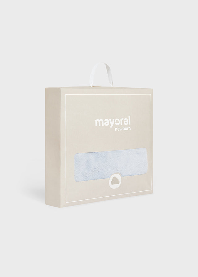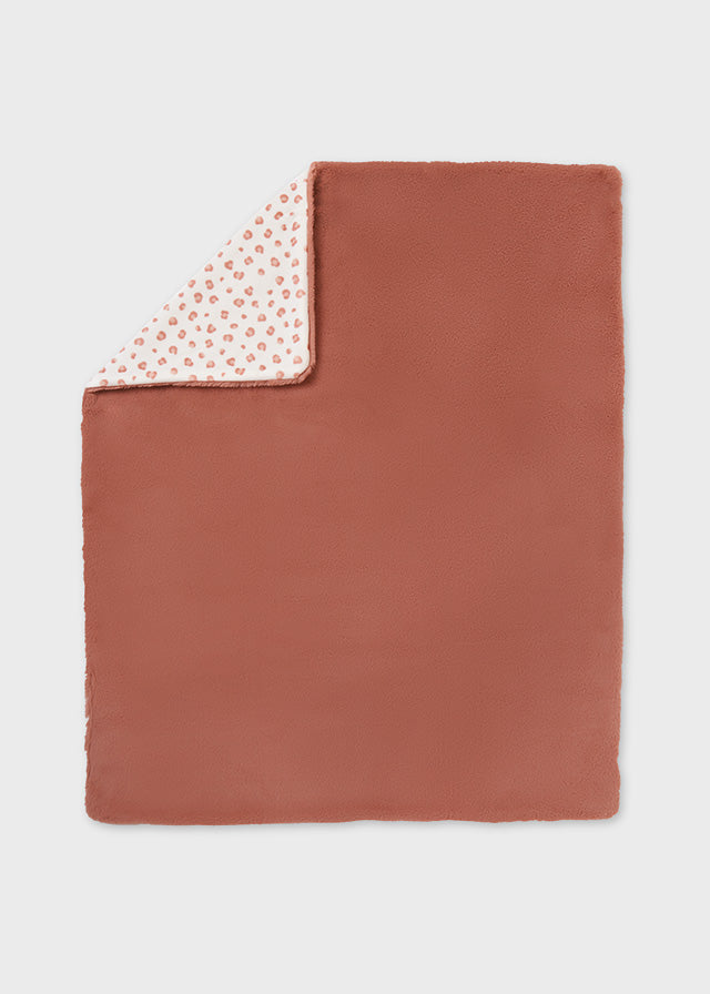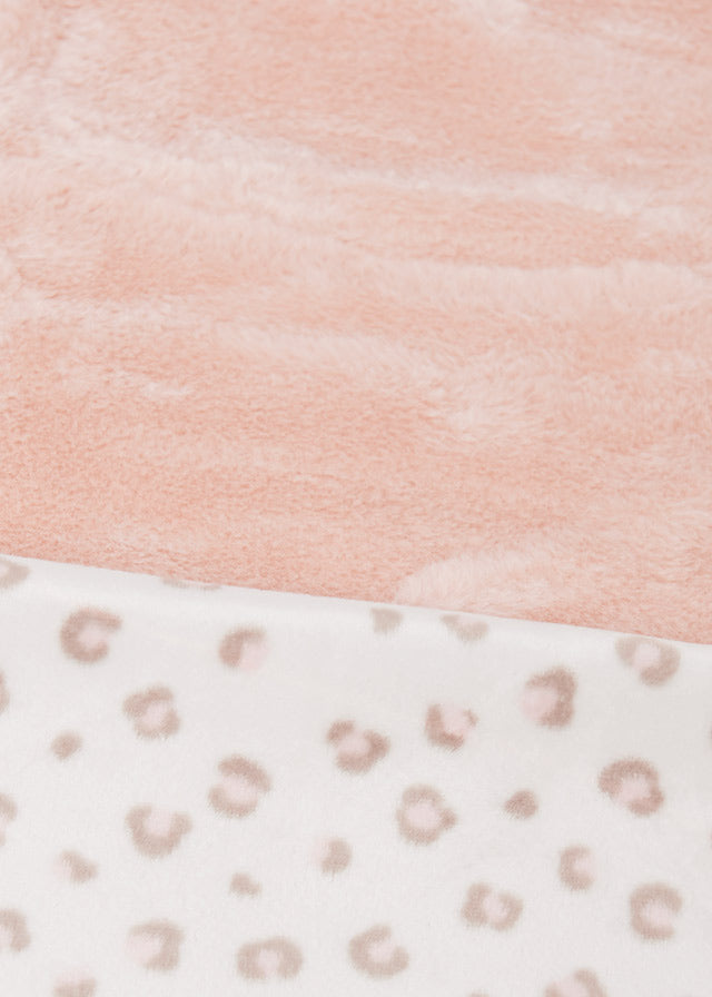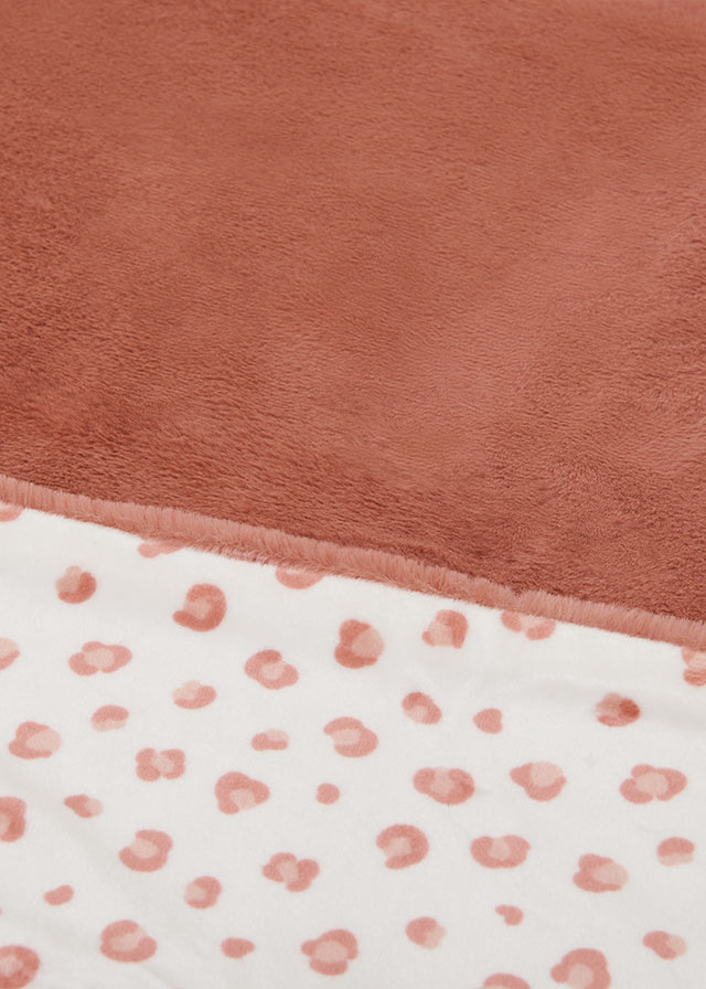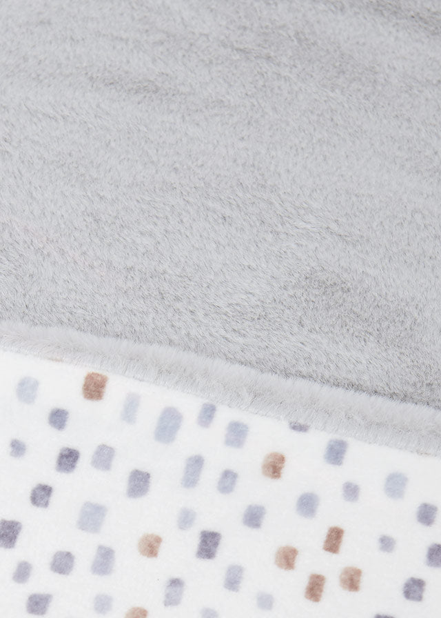 Manta de pelo estampada con tejido elaborado en poliéster. Elementos de adorno: aplique decorativo, aplique de bordado.