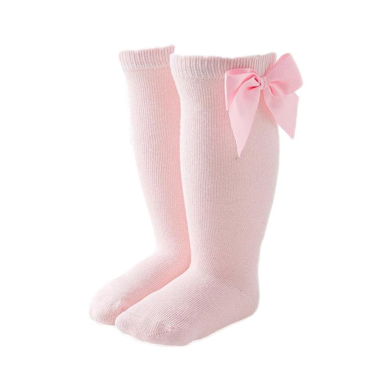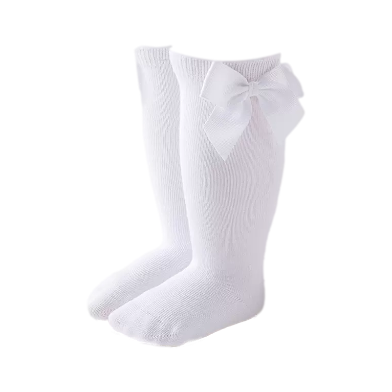 Media para bebé unicolor al estilo español con detalle de lazo. ¡Dale un toque de elegancia y delicadeza a los looks de tu princesa con estas medias!