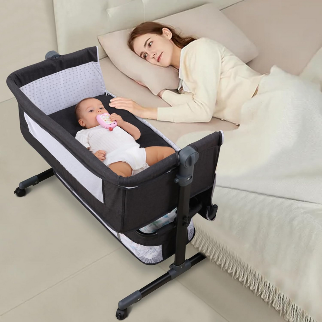 - Lateral abatible (Colecho) de apego a la cama de mamá, ideal para los primeros meses del bebé.