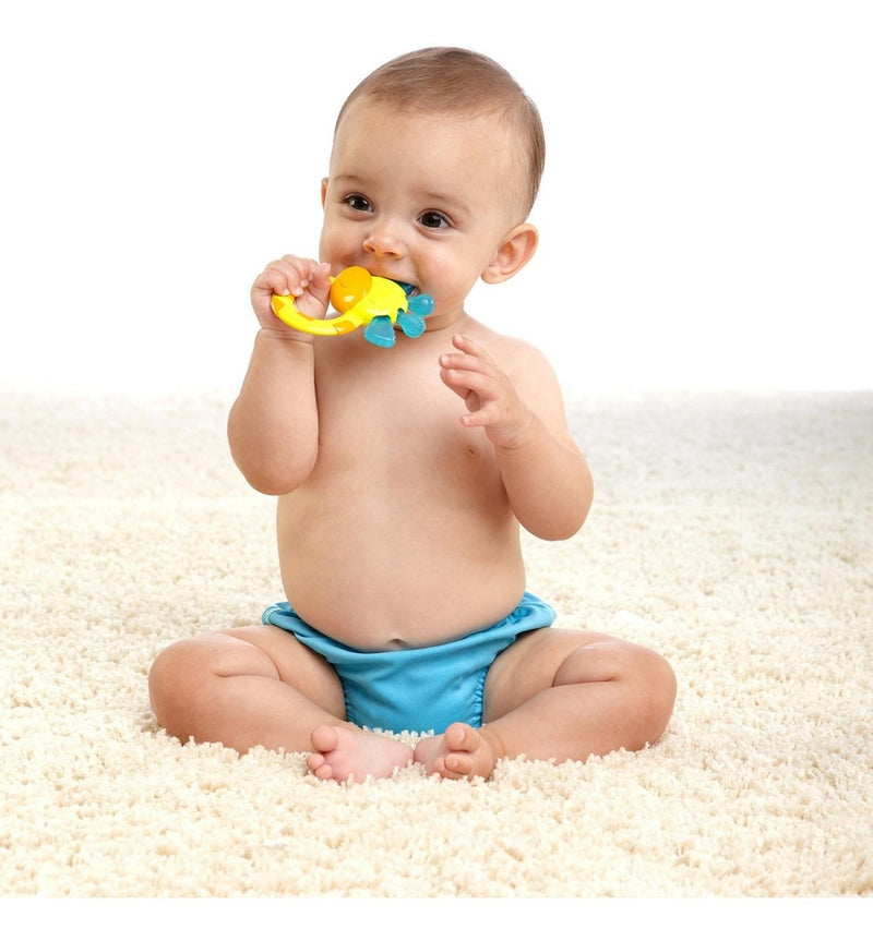 Mordedor lleno de agua para calmar las encías del bebé durante la dentición. Las formas icónicas y contrastes de colores promueven el desarrollo táctil. La forma ergonómica asegura la llegada con facilidad a todas las áreas de la mandíbula.