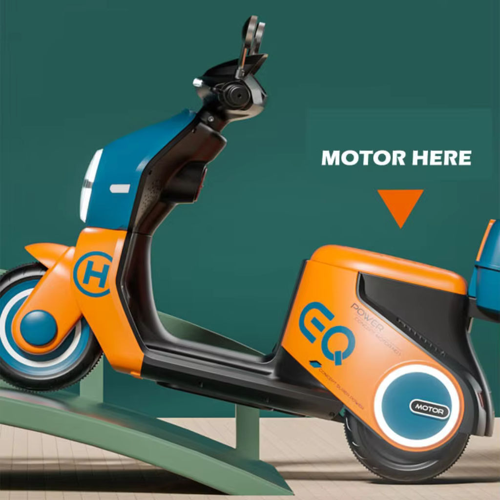 Esta motocicleta eléctrica tipo scooter es el vehículo perfecto para introducir a los más pequeños en el mundo de la conducción. Con un diseño vibrante y un estilo moderno, capturará la atención de cualquier niño.