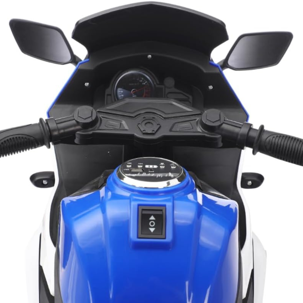 Experiencia Multimedia: Equipada con lo último en entretenimiento, la moto integra conectividad Bluetooth para que el niño pueda reproducir su música favorita directamente desde un teléfono. Además, el panel de control incluye funciones de Educación Temprana, ofreciendo historias o sonidos educativos que complementan el tiempo de juego. Las luces LED en los faros añaden un toque de autenticidad, iluminando el camino y haciendo que la moto sea visible en condiciones de poca luz.