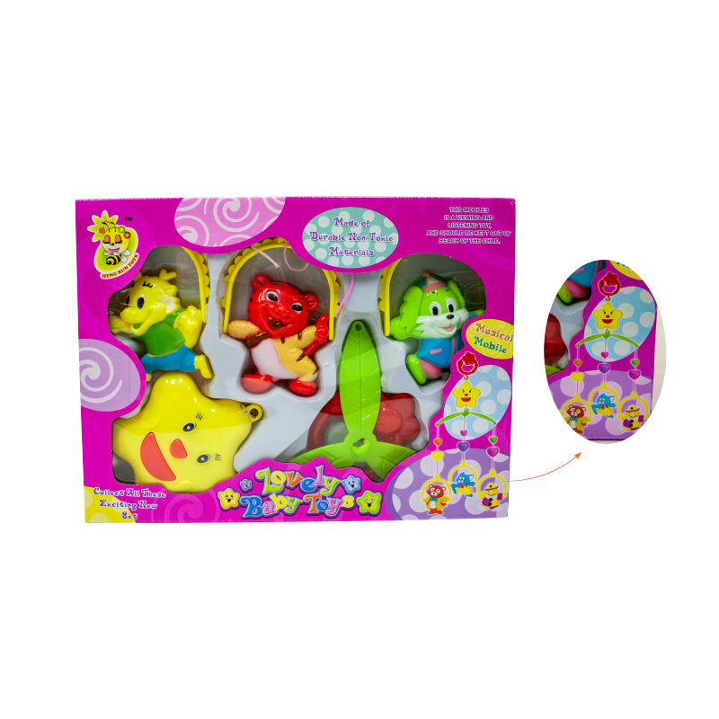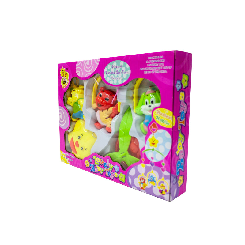 Mini móvil musical con sonidos para entrenar el sentido auditivo del bebé. Las figuras de animales con diferentes colores le provocarán al bebé curiosidad.