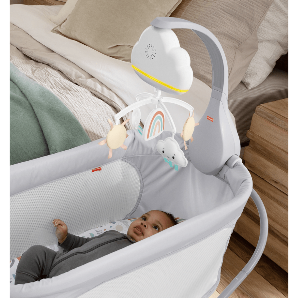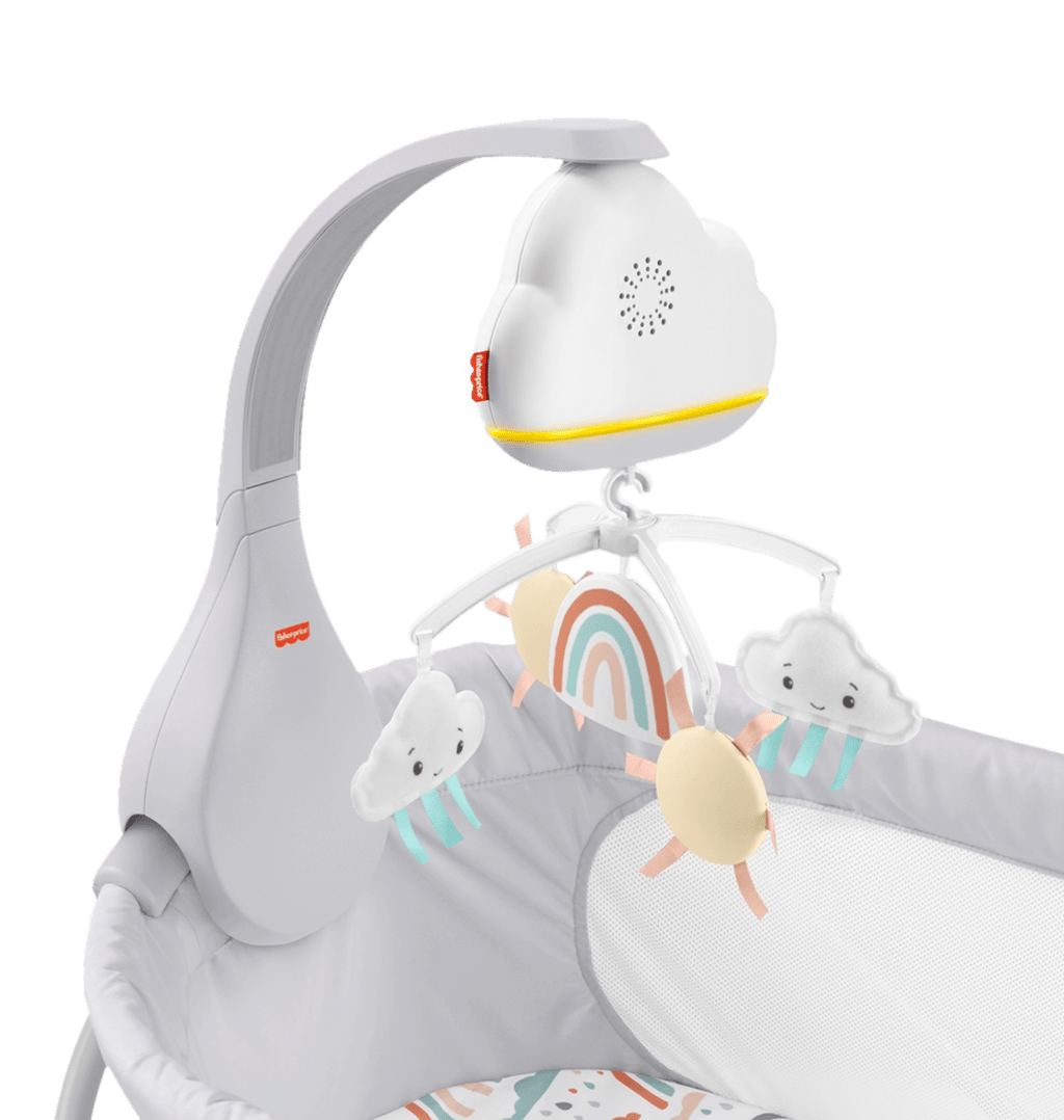 - Incluye juguetes colgantes de un sol y nubes deslumbrantes y cuenta con una lista de reproducción de 20 minutos para ayudar a tu recién nacido a relajarse y tener dulces sueños