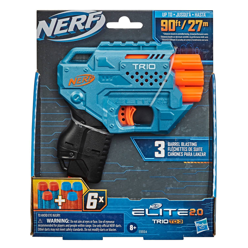 Nerf Elite 2.0 que dispara hasta 3 dardos a la vez y viene con 6 dardos Elite. Tu niño ejercitará todo el cuerpo cuando debe correr a esconderse al ser alcanzados por su rival; queman energía y liberan adrenalina. Recomendado para niños mayores de 8 años.