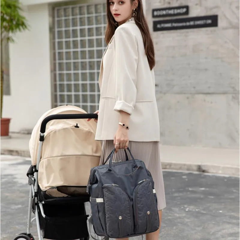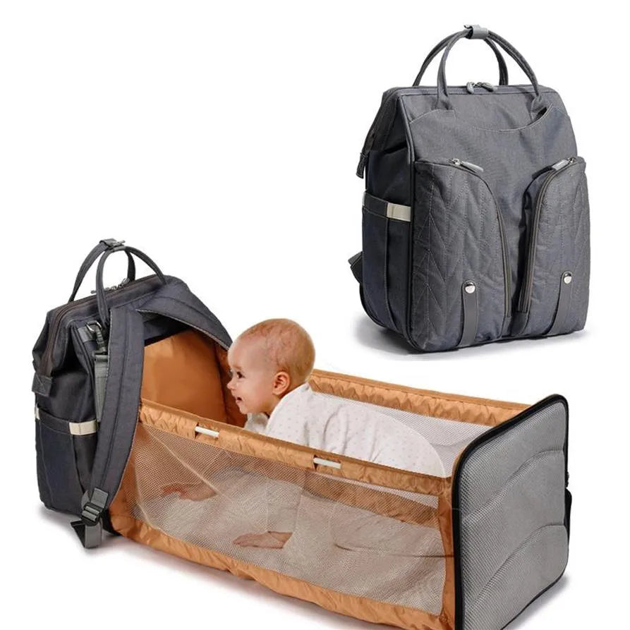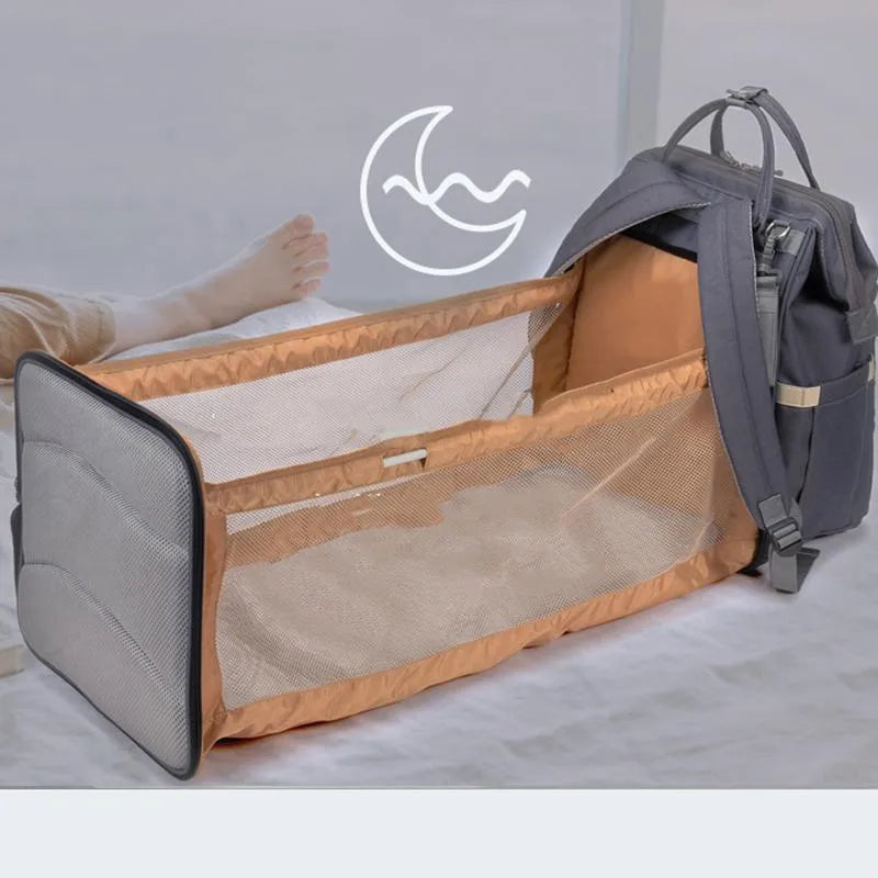 - Puede colocar a su hijo de forma segura en la cama plegable de la mochila cambiador y sacar las cosas necesarias de la bolsa para cuidarlo con las manos libres.