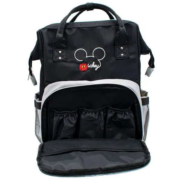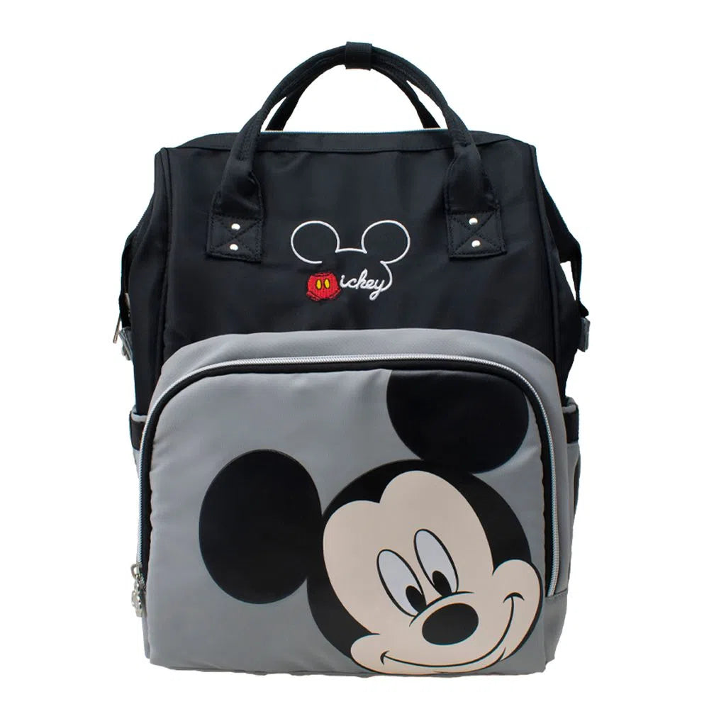 Espectacular Pañalera Mickey Mouse fabricada con materiales de alta resistencia, que te permite llevar todo lo que tu bebé necesita, ya que cuenta con gran espacio para el biberón, pañitos y todos los implementos de su cuidado. Está elaborado 100% en poliéster, cuenta con manijas reforzadas, forro y bolsillos interiores en tela, bolsillos laterales, agarraderas acolchadas, puller metálico y un espectacular motivo de Mickey Mouse que sin duda te encantará.