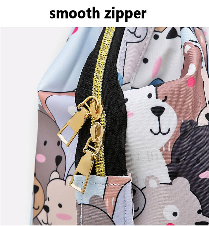 Pañalera tipo morral con hermosos y divertidos diseños para que puedas llevar todo lo que necesitan tú y tu bebé.