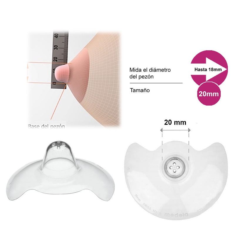Las pezoneras de contacto Medela permita dar pecho al bebé a pesar de dificultades como pezones planos, invertido, adoloridos o agrietados. La pezoneras protegen los pezones durante la lactancia y también ayudan a que el bebé succione en la posición correcta. Su forma especial ofrece máximo contacto con la piel.